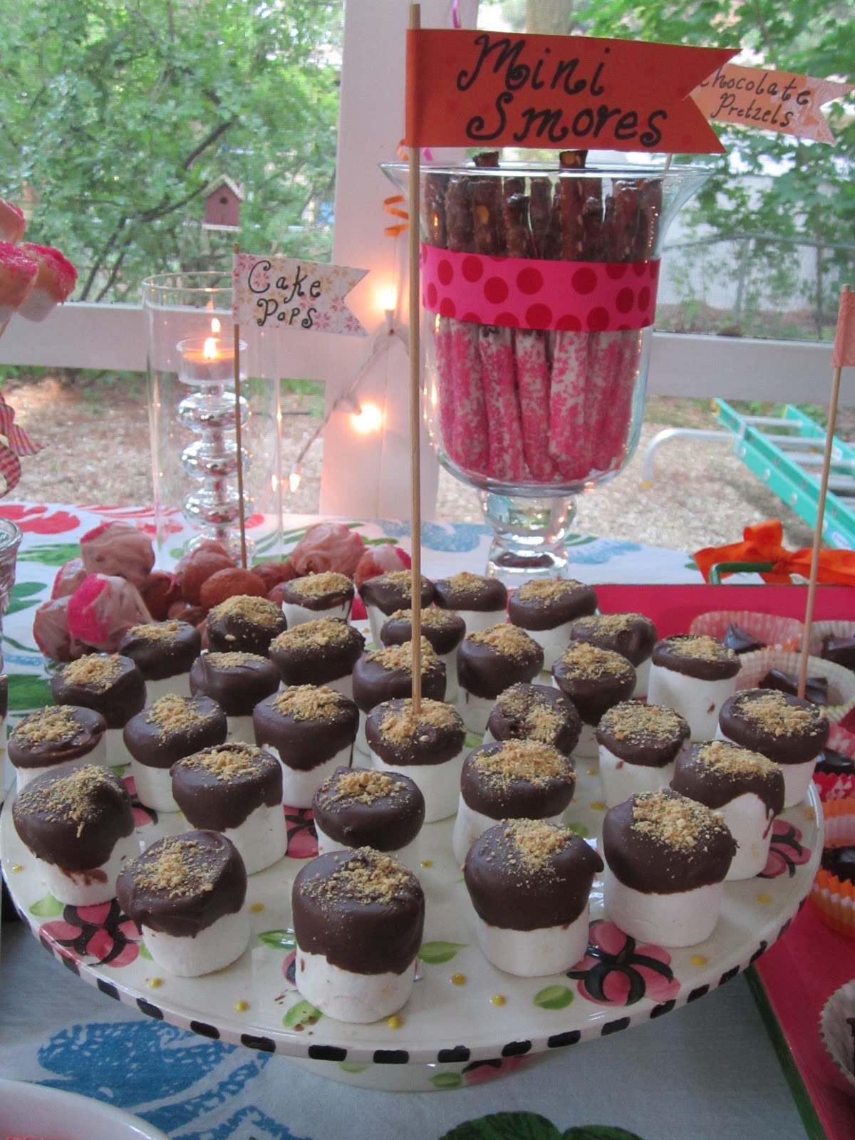 Petit fours, Emma's favorite tea party cookies and donuts and chocolate dipped marshmallows on a stick!